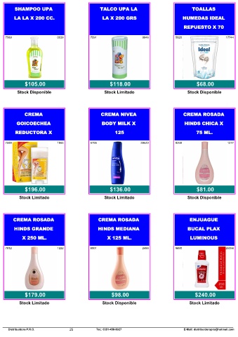 Distribuidora P.R.O. 25 Tel.: 0351-458-8927 E-Mail: distribuidorapro@hotmail.com