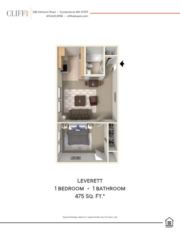 248 Amherst Road • Sunderland, MA 01375 413.665.3958 • cliffsideapts.com Leverett 1 bedroom • 1 bathroom 475 Sq. Ft.* *Square footage listed is an approximate value for each unit.