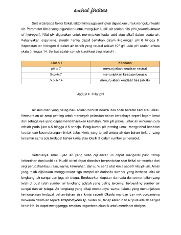 air. Parameter kimia yang digunakan untuk mengukur kualiti air adalah nilai pH (potential/power