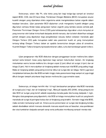 menjelaskan bahawa jika nilai BOD semakin tinggi, maka pencemaran bagi sampel air juga tinggi