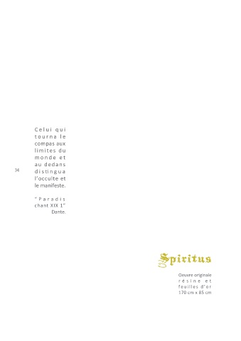 34 “ P a r a d i s chant XIX 1” Dante. Spiritus Oeuvre originale r é s i n e e t f e u i l l e s d ’ o r 170 cm x 85 cm