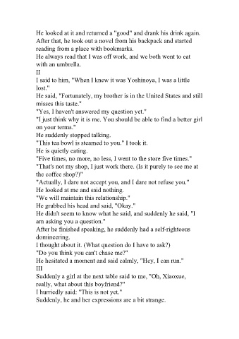 Suddenly a girl at the next table said to me, "Oh, Xiaoxue,