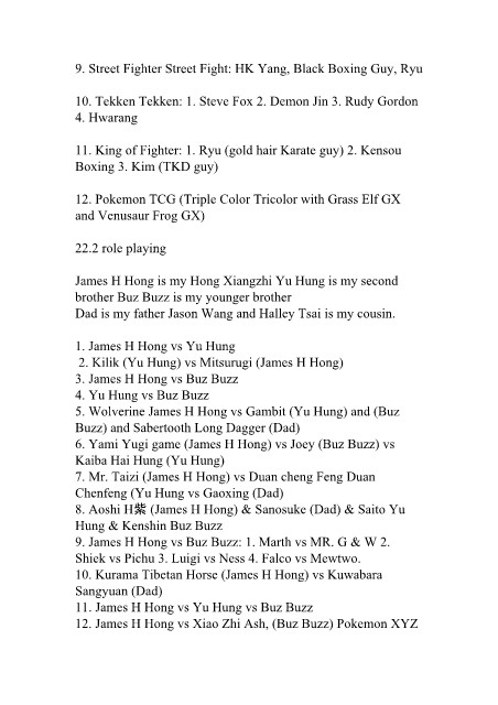 9. James H Hong vs Buz Buzz: 1. Marth vs MR. G & W 2.