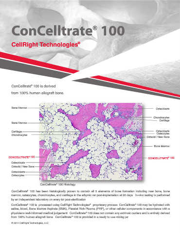 ConCelltrate 100 has been histologically proven to contain all 5 elements of bone formation including new bone, bone