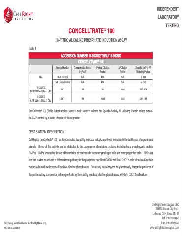 CellRight’s ConCelltrate 100 has demonstrated the ability to induce ectopic new bone formation in the soft tissue of experimental