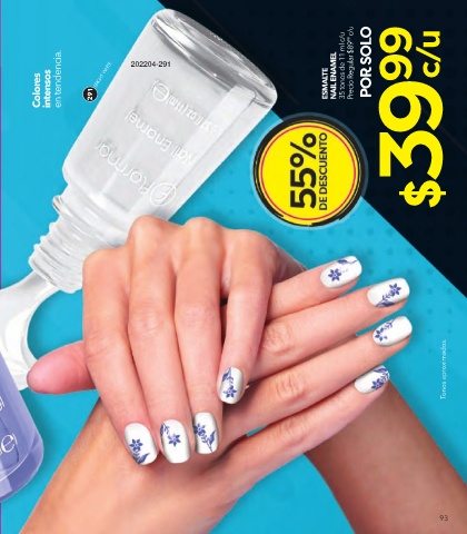intensos BRIGHT WHITE 202204-291 NAIL ENAMEL 35 tonos de 11 ml c/u Precio Regular $89 99 c/u POR SOLO 99 u c/ Colores en tendencia. 291 ESMALTE $3 9 Tonos aproximados. 93