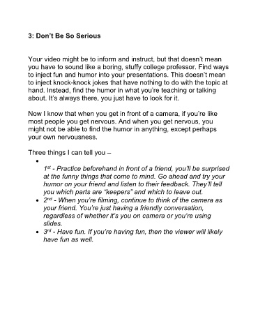 3 - Have fun. If you’re having fun, then the viewer will likely