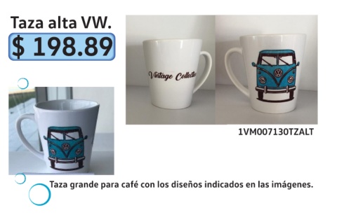 Taza alta VW. $ 198.89 1VM007130TZALT Taza grande para café con los diseños indicados en las imágenes.