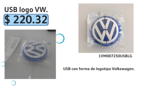 USB logo VW. $ 220.32 1VM007250USBLG USB con forma de logotipo Volkswagen.