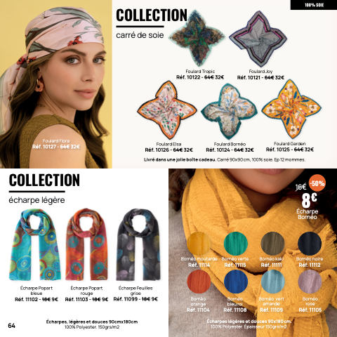 Livré dans une jolie boîte cadeau. Carré 90x90 cm, 100% soie. Ep 12 mommes.