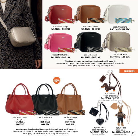Vendus avec deux bandoulières amovibles dont une à motif assorti.
