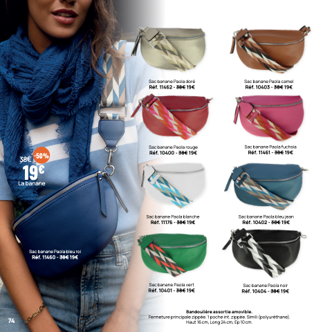 Fermeture principale zippée. 1 poche int. zippée. Simili (polyuréthane).