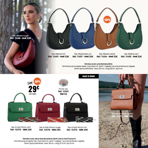 Fermeture principale clip. 3 poches int. dont 1 zippée. 1 poche extérieur zippée.