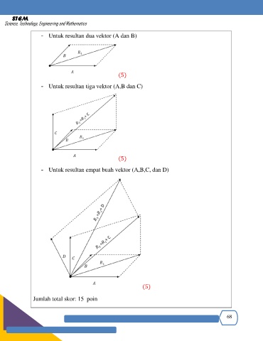STEM Science, Technology, Engineering and Mathematics - Untuk resultan dua vektor (A dan B) 5 - Untuk resultan tiga vektor (A,B dan C) 5 - Untuk resultan empat buah vektor (A,B,C, dan D) 5 Jumlah total skor: 15 poin 68