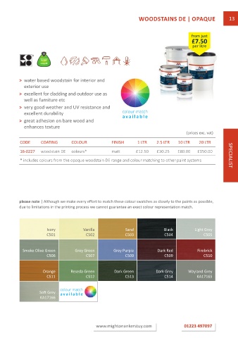 * includes colours from the opaque woodstain DE range and colour matching to other paint systems SPECIALIST