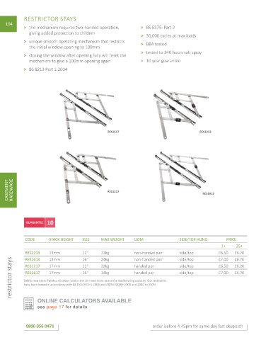 restrictor stays Safety restrictors fitted to windows sold in the UK need to be tested for load bearing capacity. Our restrictors side/top £6.50 £6.20