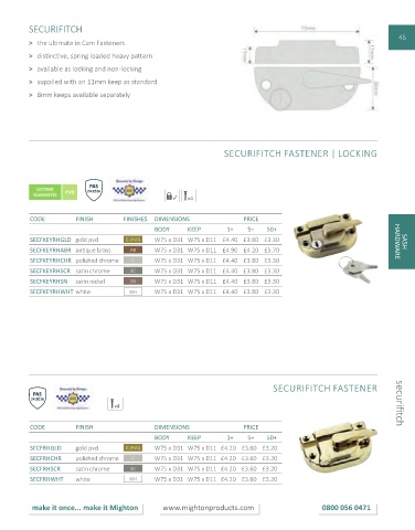SECFKEYRHGLD gold pvd G (PVD) W75 x D31 W75 x D11 £4.40 £3.80 £3.30 HARDWARE SASH