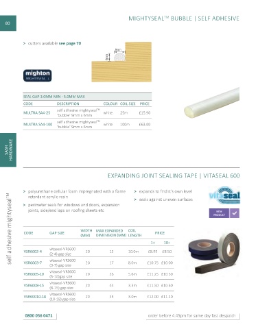 self adhesive mightyseal TM CODE GAP SIZE WIDTH MAX EXPANDED COIL 1+ PRICE 10+