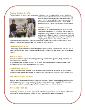 and food safety. Students learn in a hands-on environment