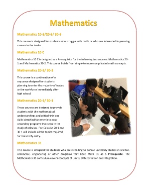 Mathematics 10 C is designed as a Prerequisite for the following two courses: Mathematics 20-
