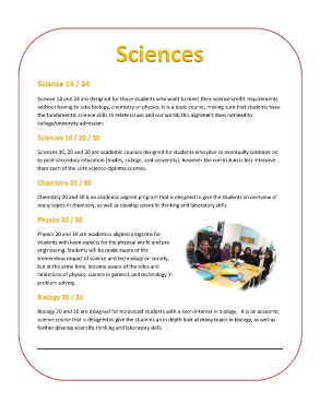 Sciences 10, 20 and 30 are academic courses designed for students who plan to eventually continue on