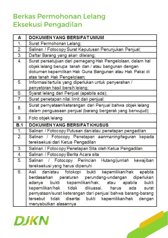terkait pelaksanaan lelang dan Kutipan Risalah Lelang kepada pemenang Lelang setelah persyaratan lengkap. Berkas Permohonan Lelang KPKNL memberikan dokumen Eksekusi Pengadilan