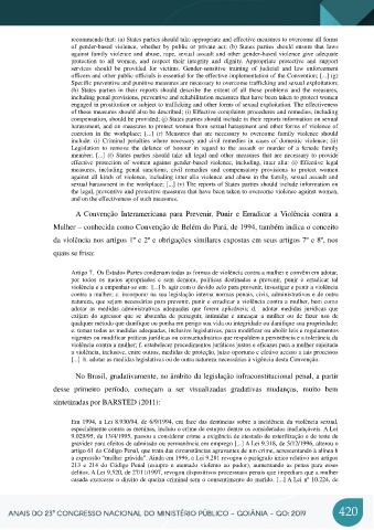 violência contra a mulher; f. estabelecer procedimentos jurídicos justos e eficazes para a mulher sujeitada