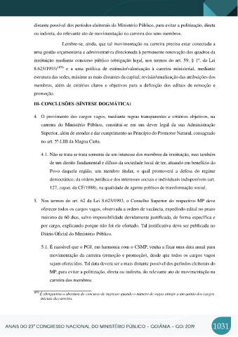 MP, para evitar a politização, direta ou indireta, do relevante ato de movimentação na