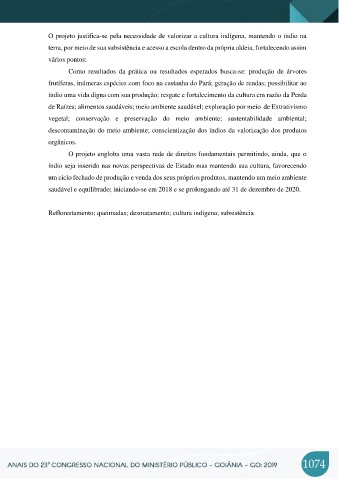 descontaminação do meio ambiente; conscientização dos índios da valorização dos produtos