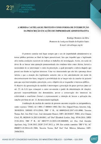 A MEDIDA CAUTELAR DE PROTESTO COMO FORMA DE INTERRUPÇÃO