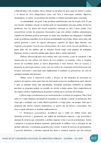 saber se o crime diminuiu em função do programa ou se devido a causas circunstanciais. Isso