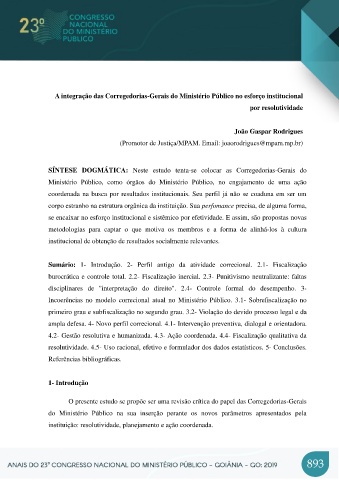 SÍNTESE DOGMÁTICA: Neste estudo tenta-se colocar as Corregedorias-Gerais do