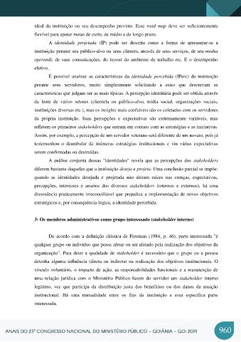 percepções, interesses e anseios dos diversos stakeholders (internos e externos), há uma
