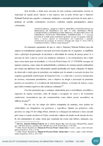 entre o princípio da presunção de inocência a efetividade do sistema de justiça penal; b) o