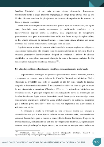 2.3- Visão integralista: o planejamento estratégico como contraponto à setorização