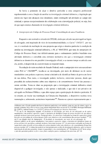 auxiliar na investigação criminal defensiva, o PL n.º 8045/2010, que trata do anteprojeto de