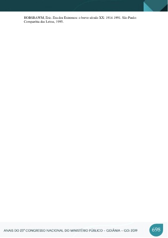 HOBSBAWM, Eric. Era dos Extremos: o breve século XX: 1914-1991. São Paulo: Companhia das Letras, 1995. 698