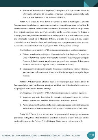 Ponto 17. O Estado deverá adotar as medidas necessárias para que o Estado do Rio de