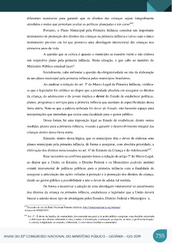 de um plano municipal pela primeira infância pelos municípios brasileiros.