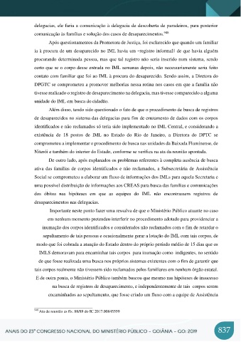 contato com familiar que foi ao IML à procura do desaparecido. Sendo assim, a Diretora do