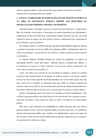 o direito à segurança pública não pode deixar de ser concretizado sob a alegação de que a