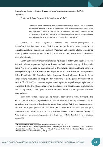 "Considera-se que há delegação disfarçada e inconstitucional, efetuada fora do procedimento
