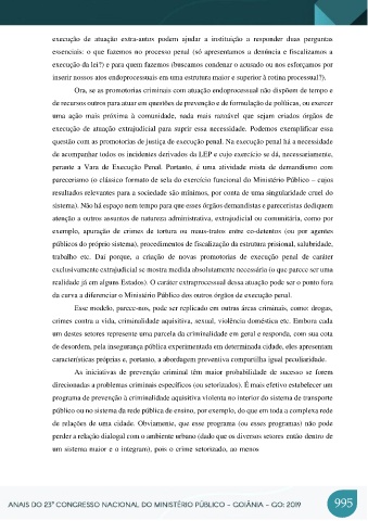 questão com as promotorias de justiça de execução penal. Na execução penal há a necessidade