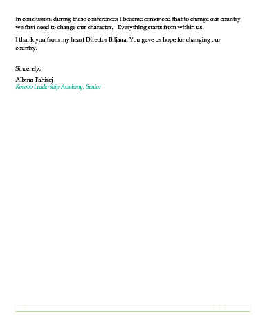 Kosovo Leadership Academy, Senior