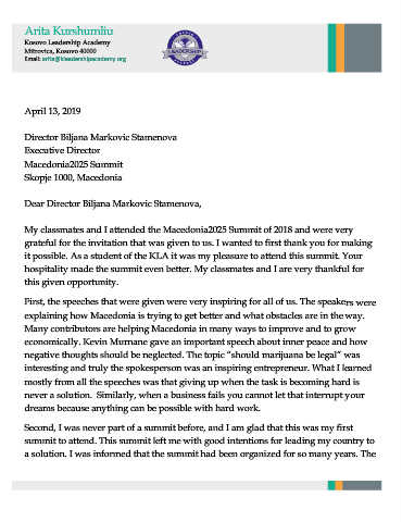 My classmates and I attended the Macedonia2025 Summit of 2018 and were very