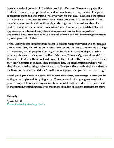 Kosovo Leadership Academy, Senior