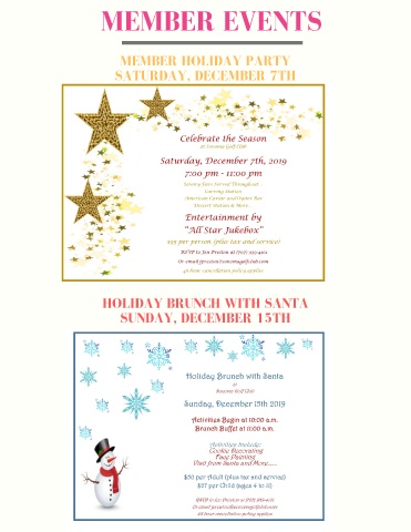MEMBER EVENTS MEMBER HOLIDAY PARTY SATURDAY, DECEMBER 7TH HOLIDAY BRUNCH WITH SANTA SUNDAY, DECEMBER 15TH