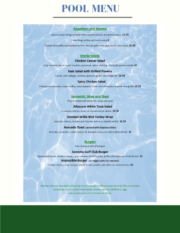 POOL MENU