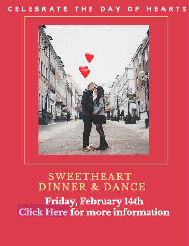C E L E B R A T E T H E D A Y O F H E A R T S SWEETHEART DINNER & DANCE Friday, February 14th Click Here for more information