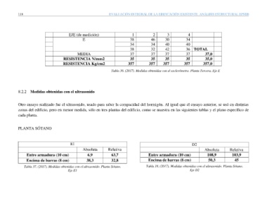 Tabla 37. (2017). Medidas obtenidas con el ultrasonido. Planta Sótano. Tabla 38. (2017). Medidas obtenidas con el ultrasonido. Planta Sótano.